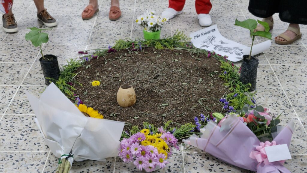 Juntas, en las oficinas de Radio Progreso y el ERIC ─dónde Margarita también ha puesto su pensamiento y trabajo─ se sembraron las margaritas en tierra de “La Siguata” en un acto simbólico donde las compañeras expresaron lo que Margarita sembró en sus vidas y luchas.